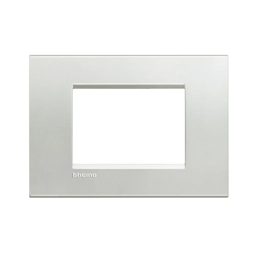 Placa de metal 3 módulos, color plata. Línea Living-Light.