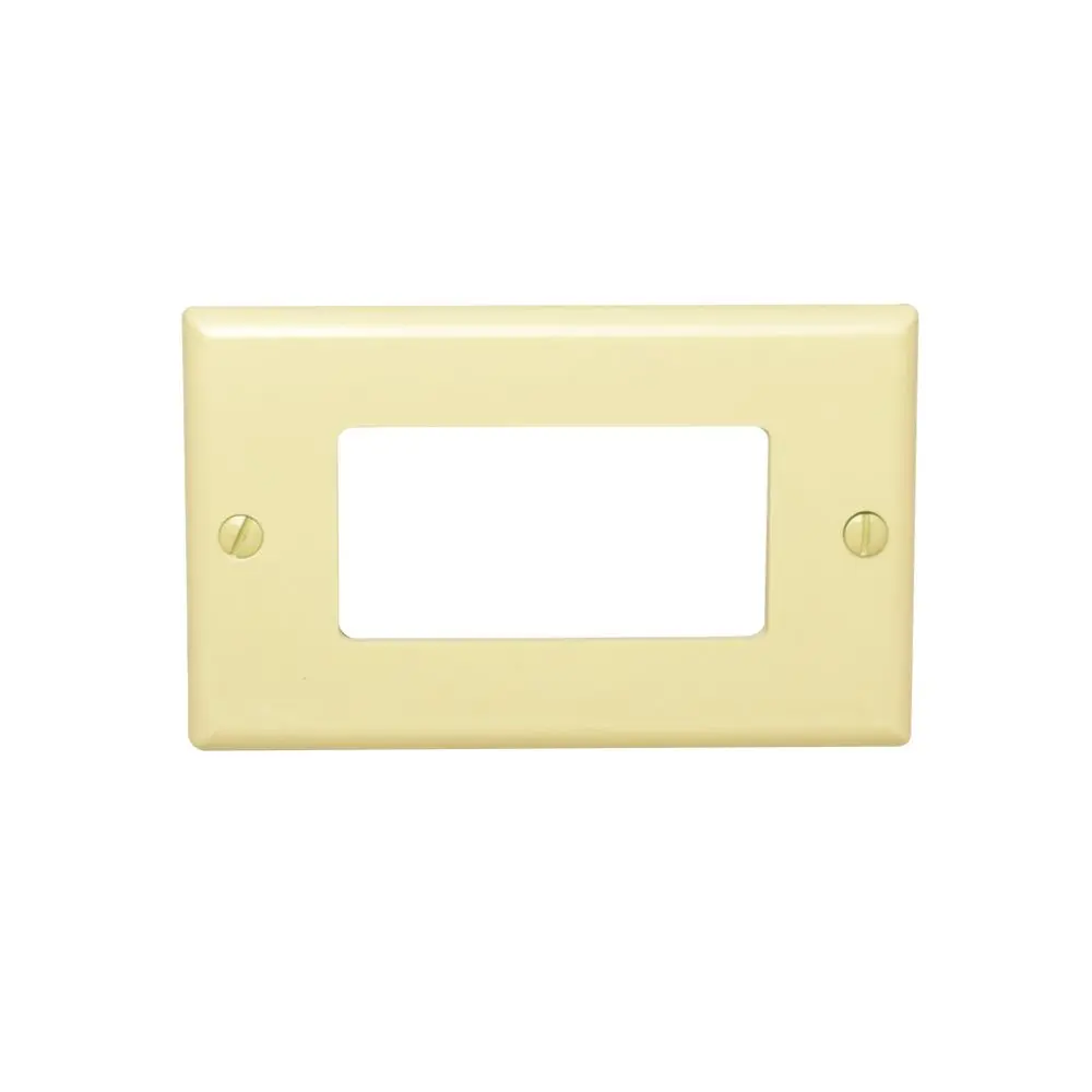Placa línea Decora (1 Gang) para interruptor, tomacorriente, etc. Material: nylon color marfil. Incluye 2 pernos para su fijación. Certificación: UL.