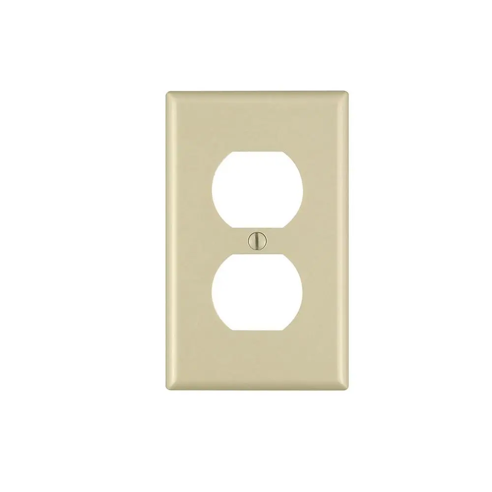 Placa para 1 tomacorriente doble. Material: baquelita color marfil. Incluye 1 perno para su fijación. Certificación: UL.